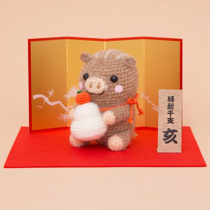 ハマナカ あみぐるみキット 鏡餅を持ったイノシシ H301 527 編みぐるみ 編み物 縁起物 お飾り 材料キット 手芸材料の通販シュゲールyahoo 店 通販 Yahoo ショッピング
